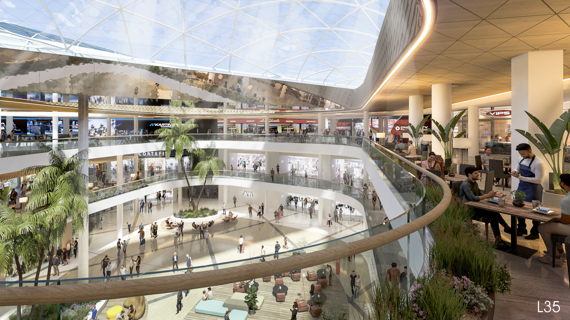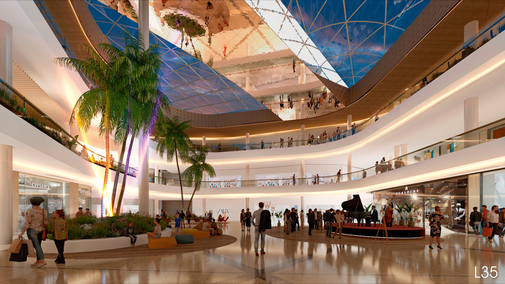 Este proyecto no solo integrará de manera muy natural el espacio previamente ocupado por El Corte Inglés sino que permitirá dotar al centro de nuevos espacios de encuentro y socialización con un gran atrio culminado por un lucernario icónico, mejorar los flujos en cada planta, así como incrementar y modernizar las conexiones verticales para garantizar una mejor permeabilidad entre los distintos niveles, mientras se da cabida a nuevas marcas para responder a las necesidades de los clientes y seguir mejorando la experiencia de visita.